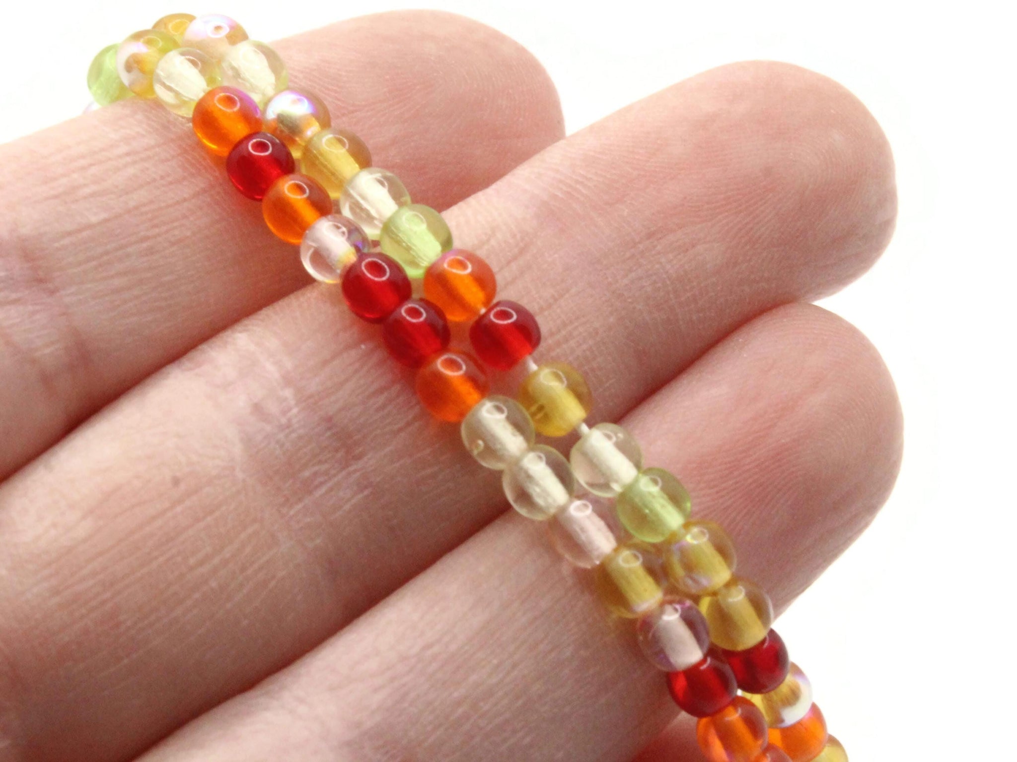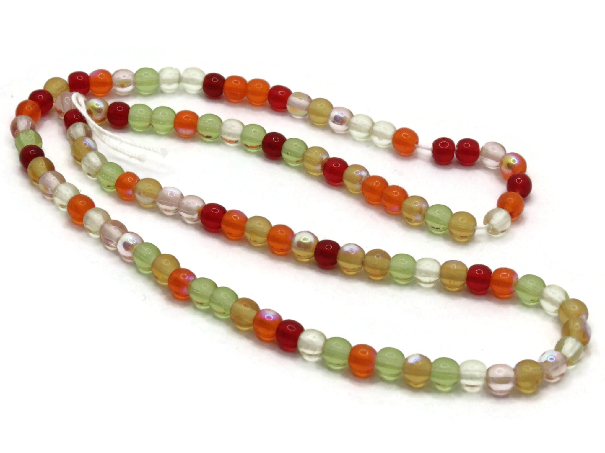 4mm Smooth Round Mixed Color Glass Beads Red Green Orange Mix