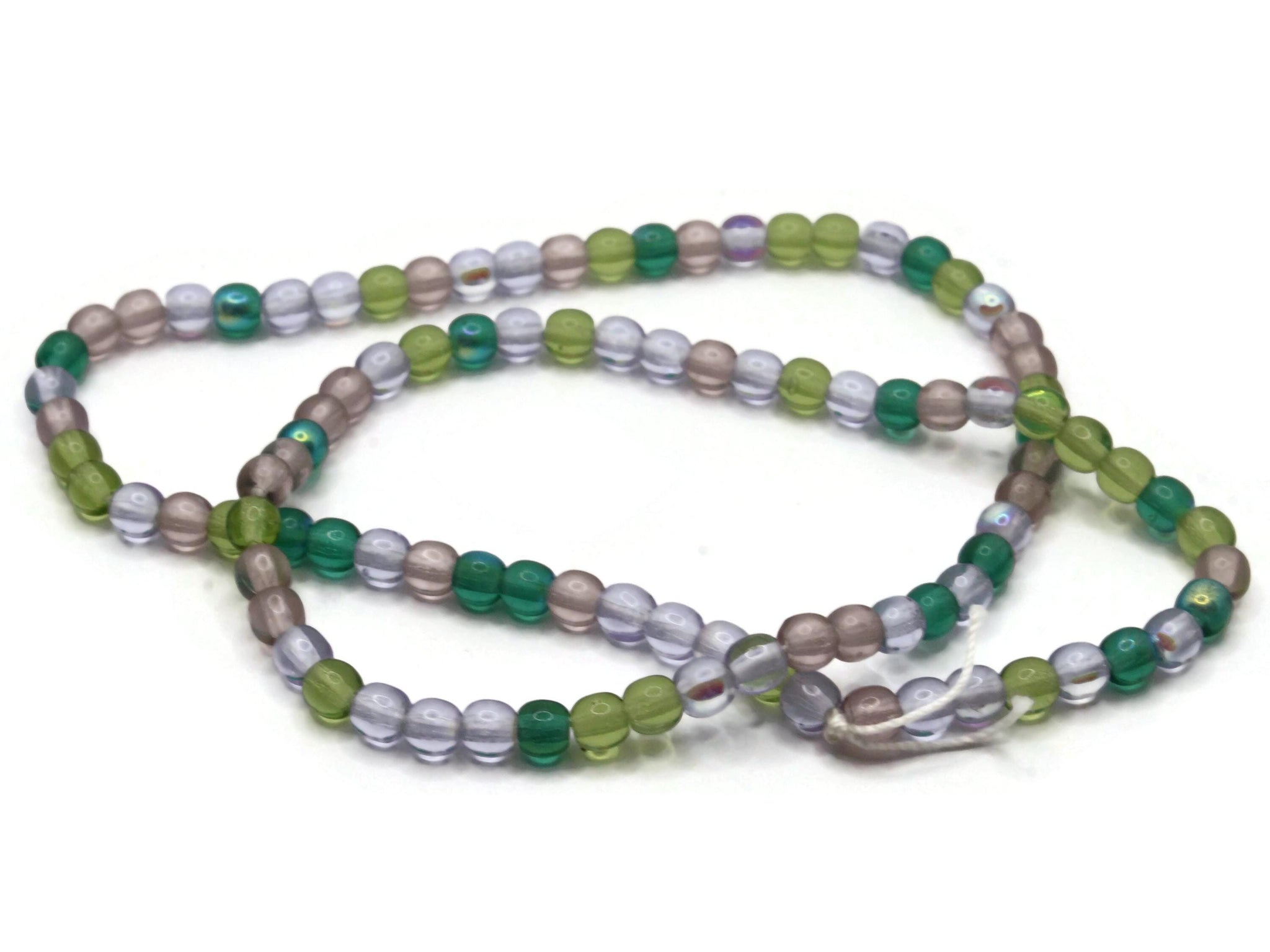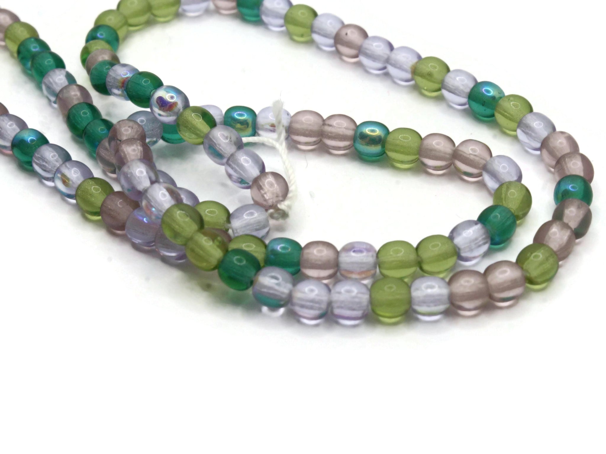 4mm Smooth Round Mixed Color Glass Beads Pink Purple and Green Mix