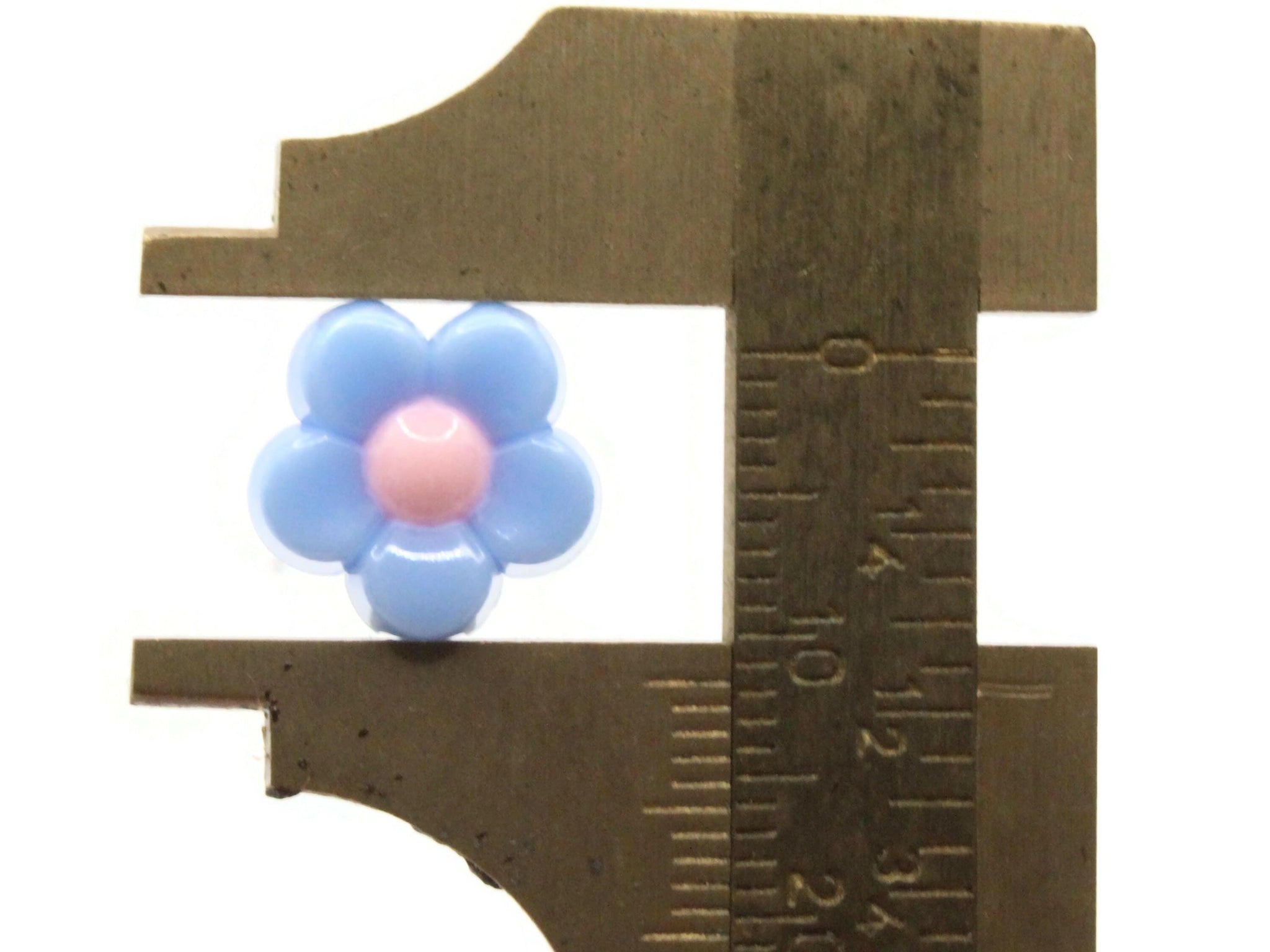 50 11mm Blue and Pink Flower Plastic Two-Tone Daisy Plant Beads