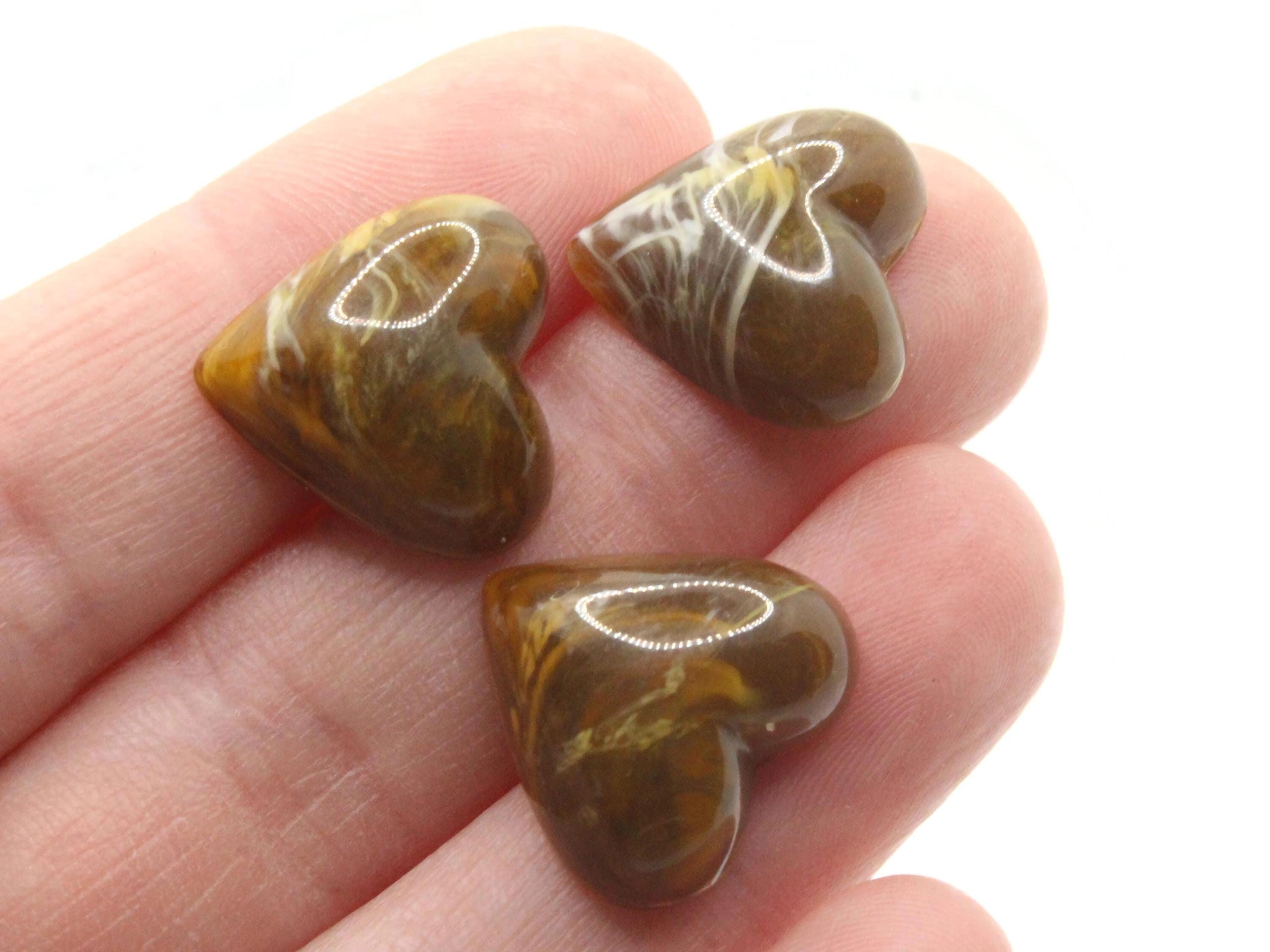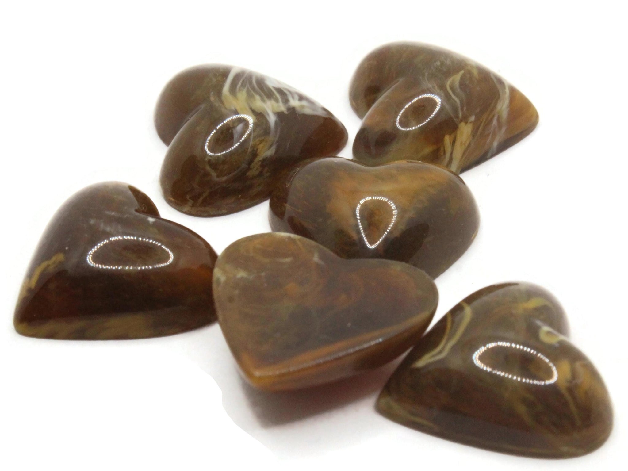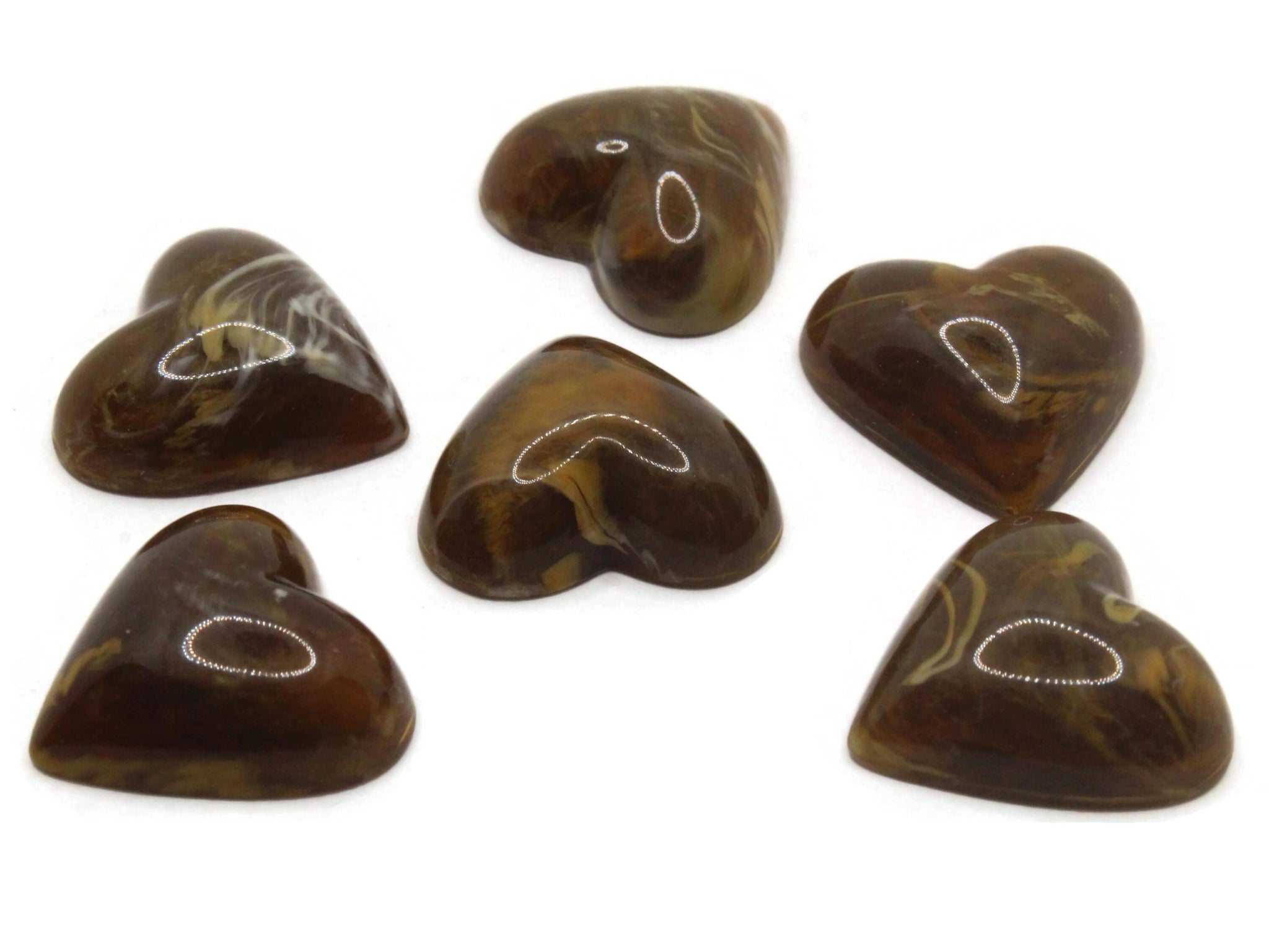 6 17mm Brown Swirling Heart Vintage Lucite Cabochons