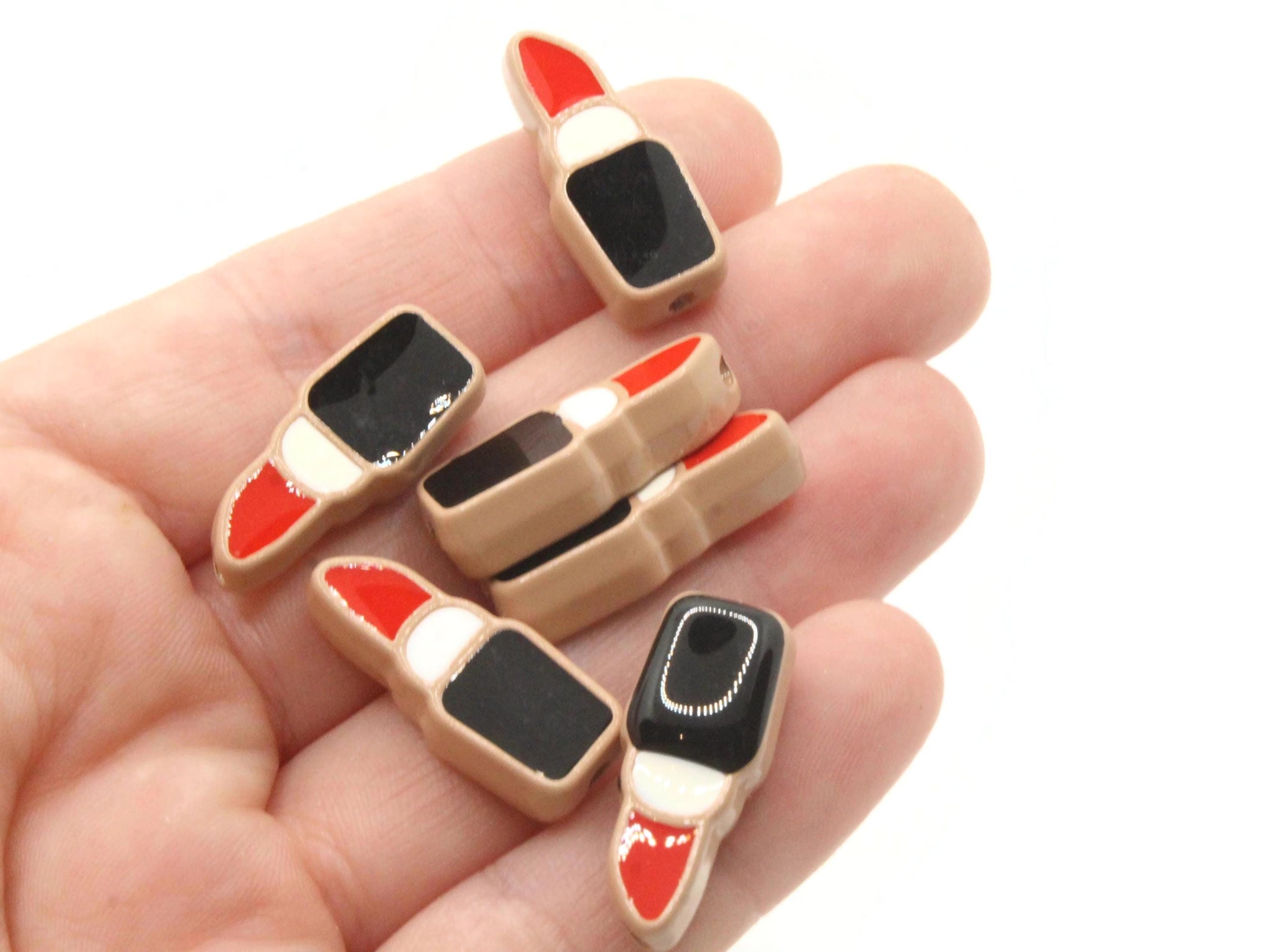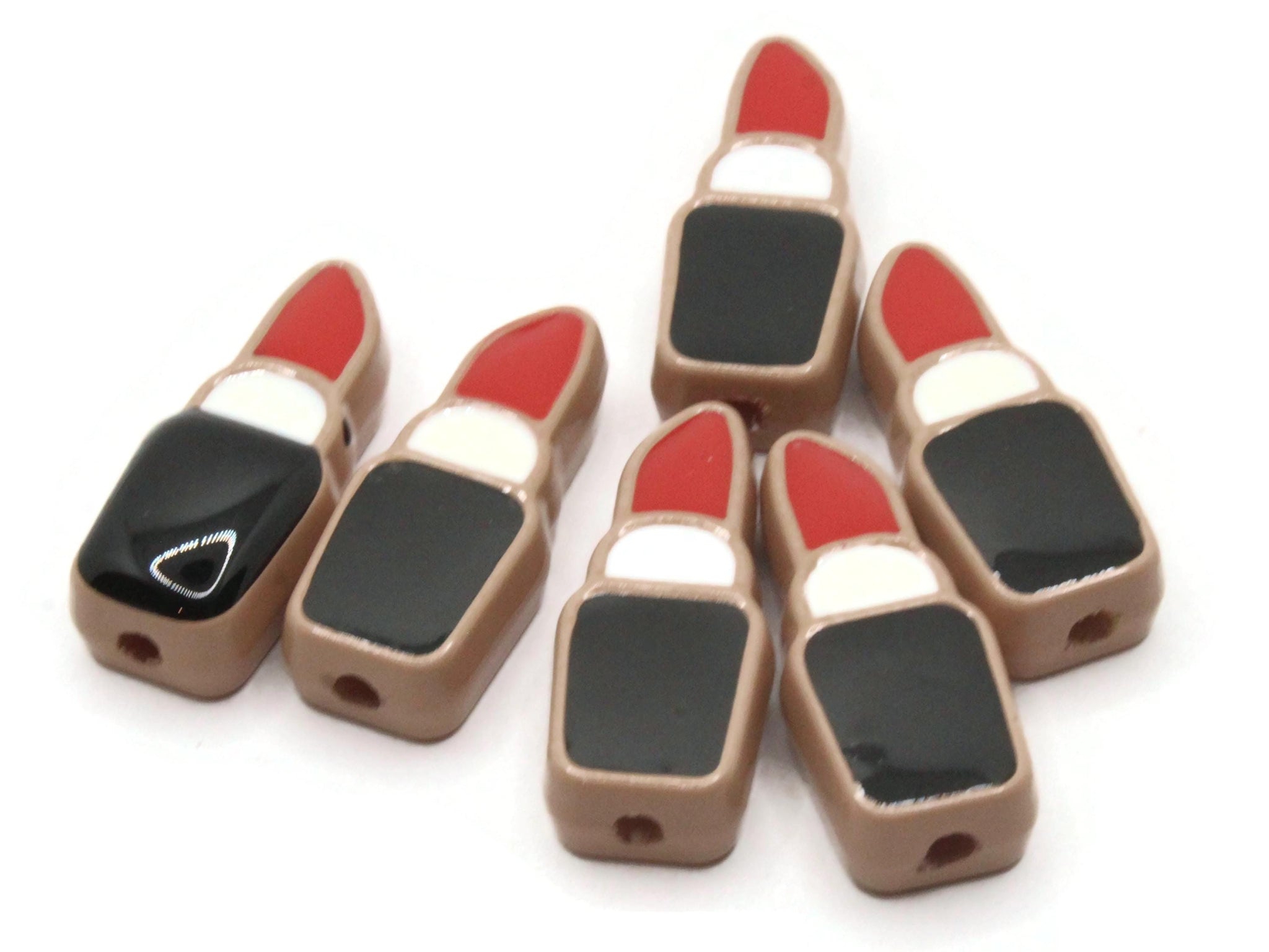 6 24mm Red Lipstick with Black and White Tube on Light Brown Plastic Beads
