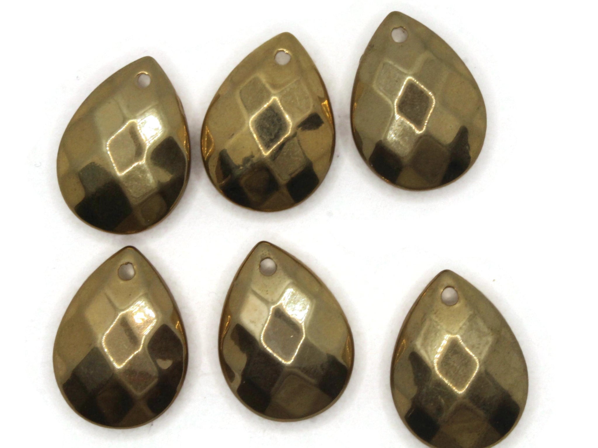 6 25mm Faceted Teardrop Vintage Gold Plated Plastic Beads