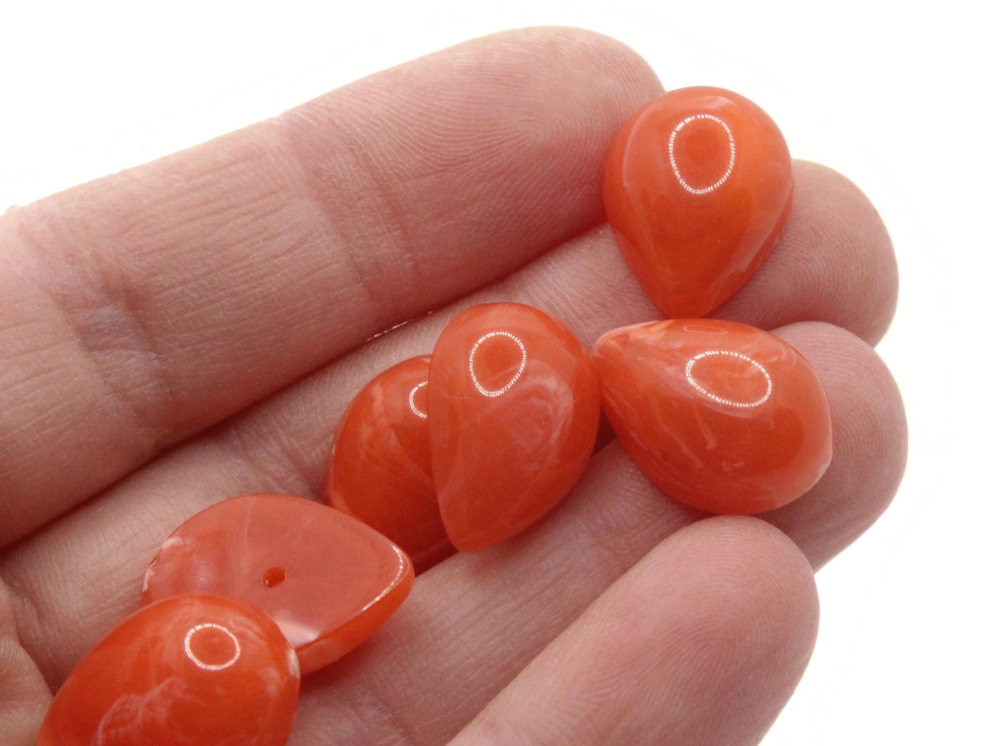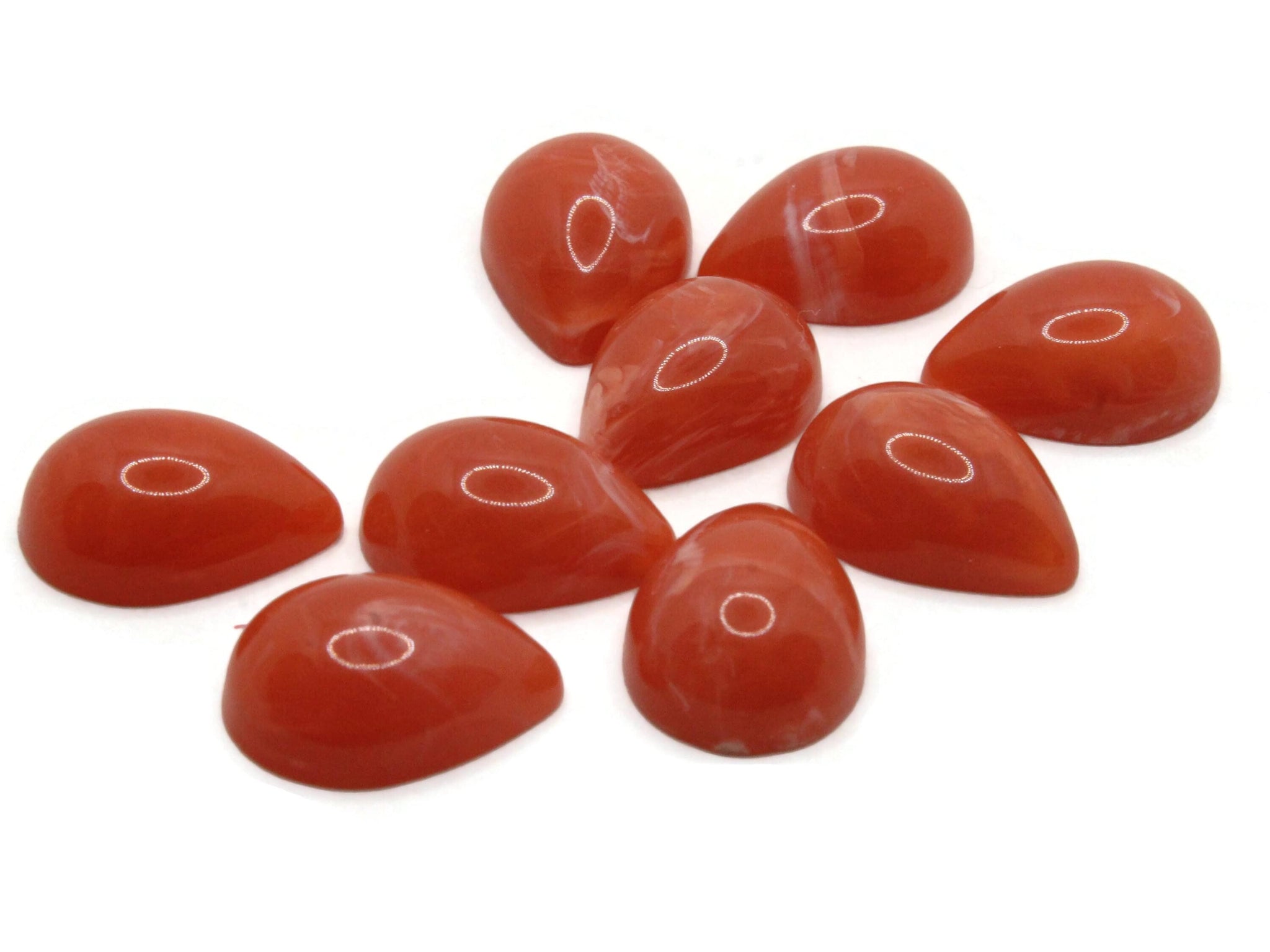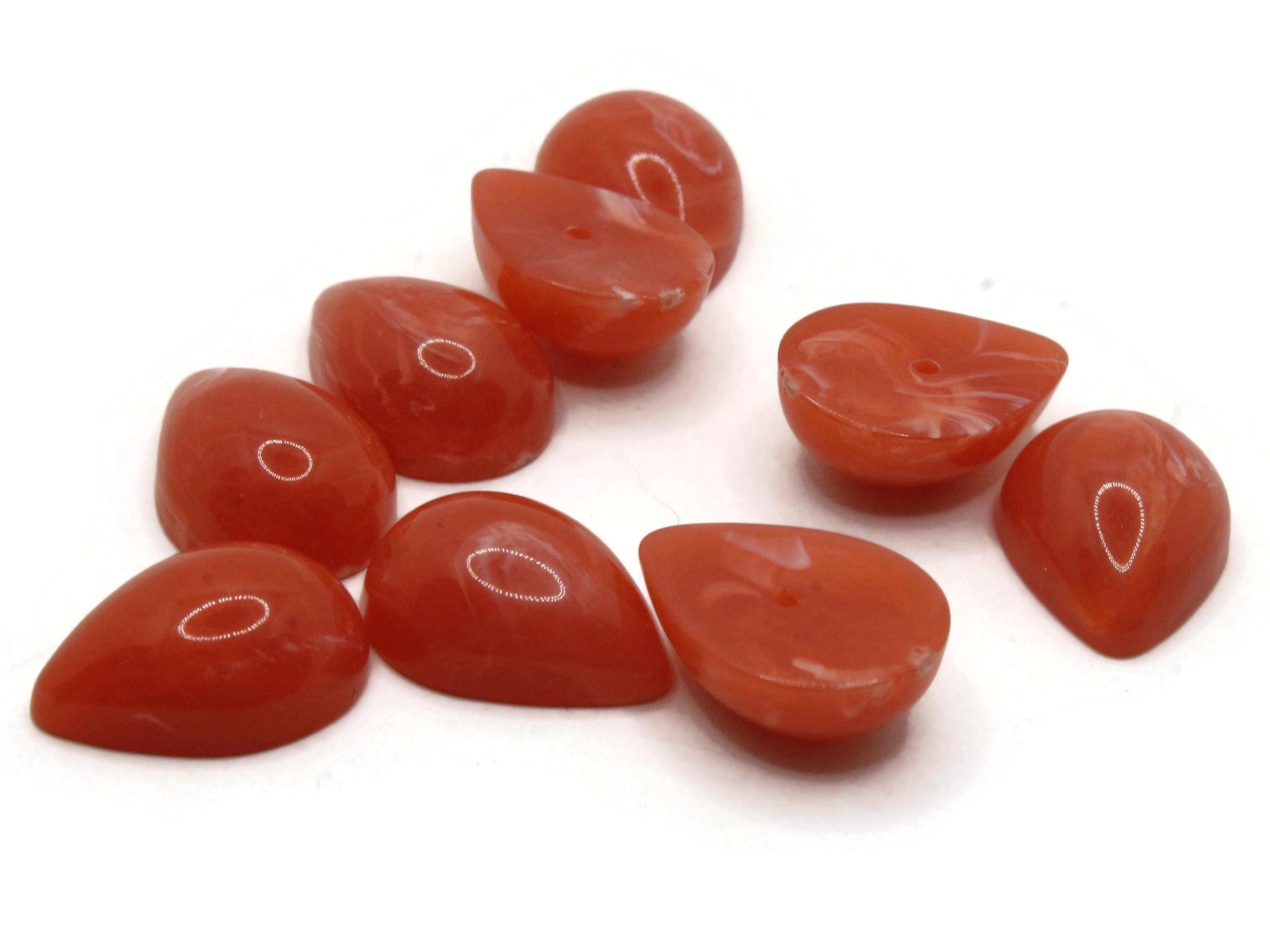 9 17mm Swirling Red Teardrop Vintage Lucite Cabochons